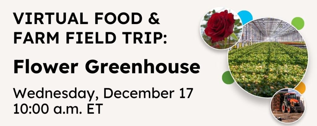 Joignez-vous à nous le mercredi 17 décembre à 10 h pour une visite virtuelle gratuite à la ferme et à l’alimentation, où vos élèves de la 2e à la 9e année visiteront Aldershot Greenhouses, une serre spécialisée dans la culture de fleurs et de plantes à l’année longue à Burlington, en Ontario.